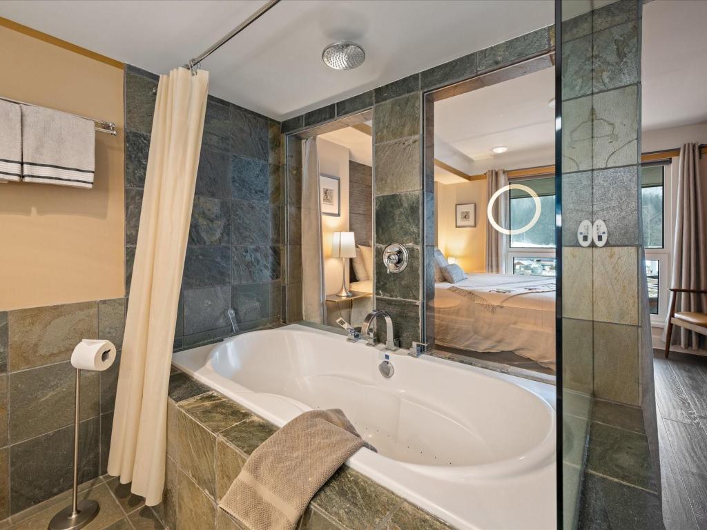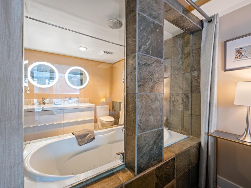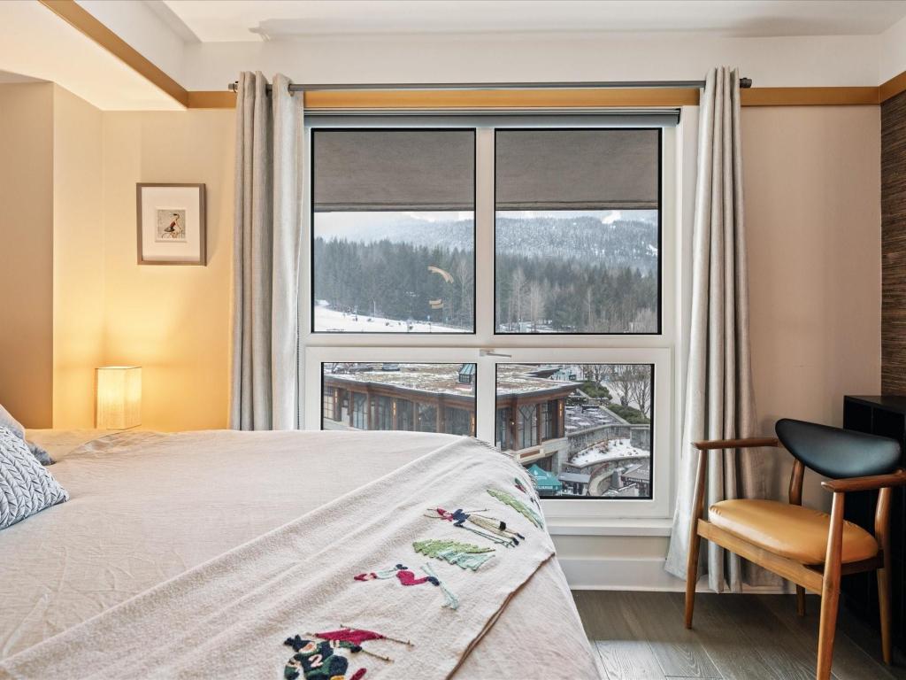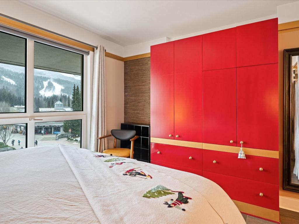 Perfectly located at the base of Blackcomb Mountain, this luxurious ski-in/ski-out residence offers direct, unobstructed views of the mountains, gondola, and Upper Village stroll from every window. A rare one-bedroom with private laundry, it features full, symmetrical living room windows which add balance and light - an uncommon detail in the building. Situated on the coveted 4th level, the highest and most sought-after floor for smaller units, this beautifully updated home benefits from Phase 1 nightly rental zoning, exceptional revenue history, and unlimited personal use. Enjoy resort-style amenities including a pool, hot tub, and gym—an elegant alpine retreat and investment.
