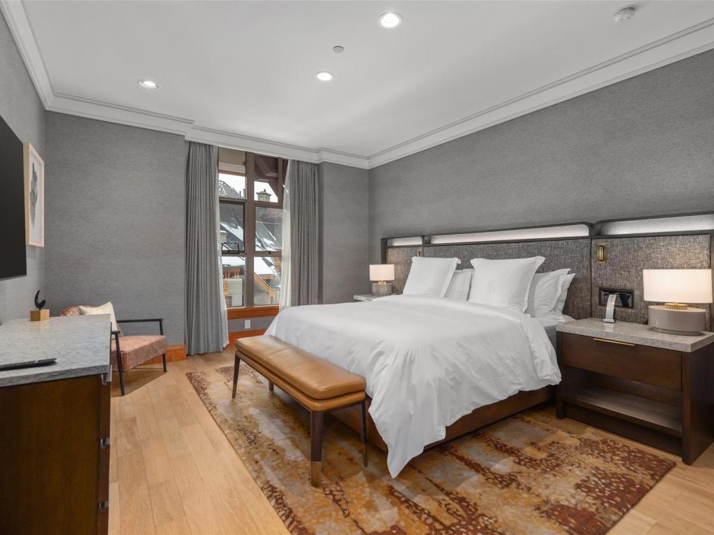 Experience the pinnacle of luxury mountain living in this exceptional residence at Four Seasons Private Residences. Set across two levels and offering 3,695 sq. ft. of beautifully designed living space, this rare southwest-facing end unit is widely regarded as one of the finest residences in the building. Featuring 4.5 bedrooms and 4.5 bathrooms, every bedroom includes its own ensuite, with three offering generous walk-in closets. The chef’s kitchen is a showpiece, complete with high-end appliances, granite countertops, and heated tile flooring—ideal for entertaining or everyday luxury living. Three fireplaces add warmth and ambiance throughout the home, while your spacious private patios provide seamless indoor-outdoor living for both summer relaxation and après-ski evenings. Thoughtfully designed for comfort and privacy, the layout offers the feel of a luxury mountain home within Whistler’s most prestigious address. Owners enjoy full access to exclusive Four Seasons world-class amenities, including ski concierge, valet shuttle, 24-hour room service, health club, outdoor pool, and hot tubs. Enjoy unparalleled flexibility with the option for full-time living, a private weekend retreat, or participation in the Four Seasons rental program if desired. Being sold fully furnished with no GST, this is a rare opportunity to own one of the most prestigious and sought-after residences in Whistler.