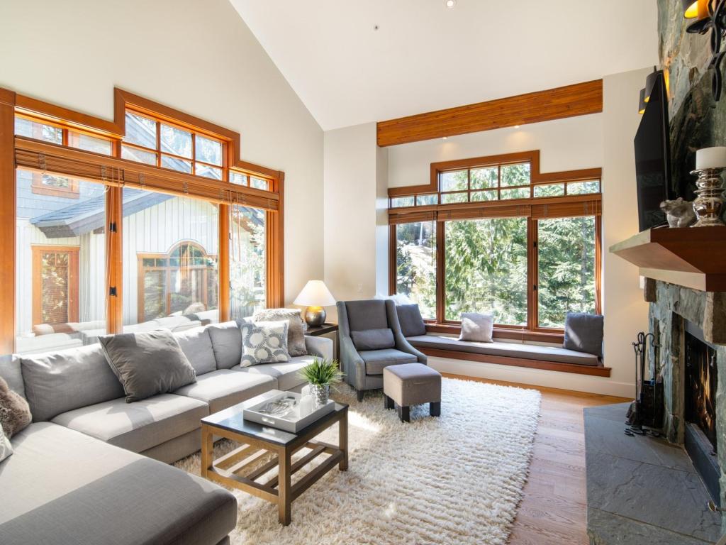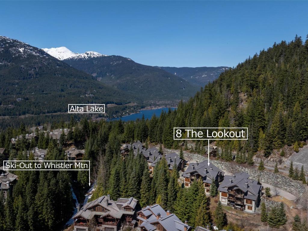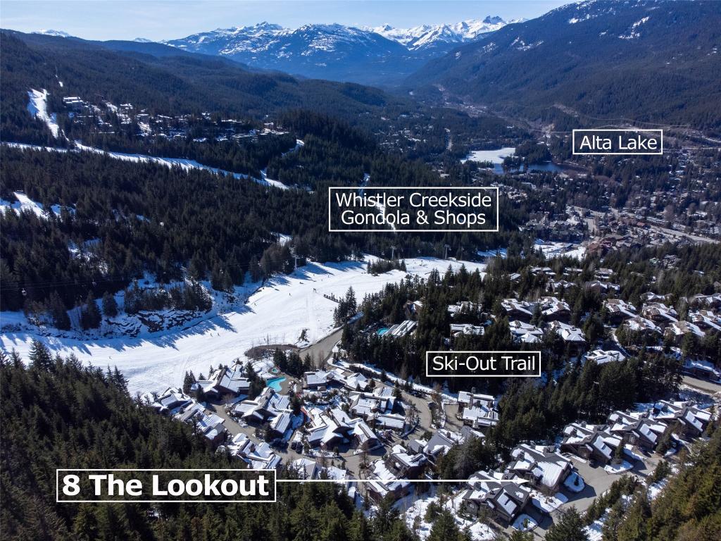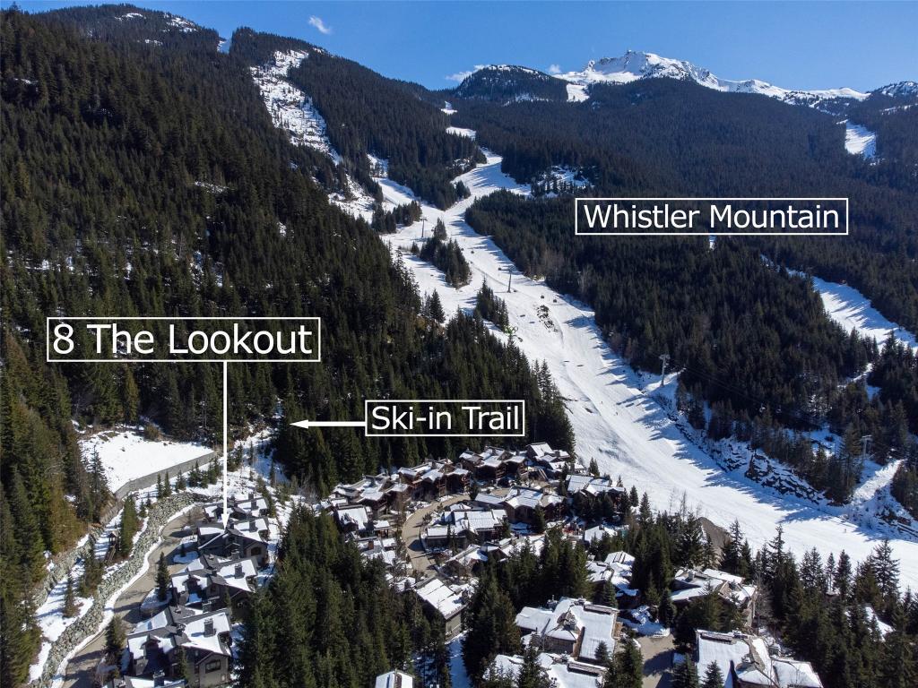 Perched on the side of Whistler Mountain, this stunning 4-bedroom, 2.5-bathroom townhome offers true ski-in/ski-out access and breathtaking views of Whistler's peak. Welcome to the pinnacle of mountain living at 8 Lookout at Taluswood. This beautifully appointed mountain retreat features an open-concept main floor with vaulted ceilings, hardwood flooring, heated tile in key areas, and a chef's kitchen outfitted with granite countertops, a Thermador gas range, and a Sub-Zero refrigerator. Perfect for entertaining, the living space opens onto three private decks - including one with your own private hot tub, ideal for relaxing after a day on the slopes. Upstairs, the spacious primary suite offers a walk-in closet, a luxurious soaker tub, and a separate glass shower. With unlimited owner use in a nightly rental zone, this property offers the flexibility to enjoy personally or generate rental revenue. Experience elevated mountain living at its finest. No GST.