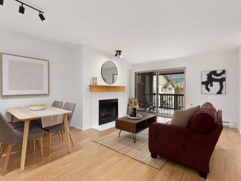 Bright, airy, and spacious 1-bedroom plus den in Mountain Trails, just off Portage Road with easy walkable access to all Village amenities. This top-floor home overlooks a quiet courtyard and captures stunning Mount Currie views. Enjoy year-round comfort with a shaded patio for summer airflow and a cozy wood-burning fireplace for winter. Fresh paint throughout, a recently updated hot water tank, and a new dishwasher add everyday ease. Features include in-suite laundry, a walk-in closet, pantry, and an oversized covered parking space. A fantastic opportunity to enter the Pemberton market.